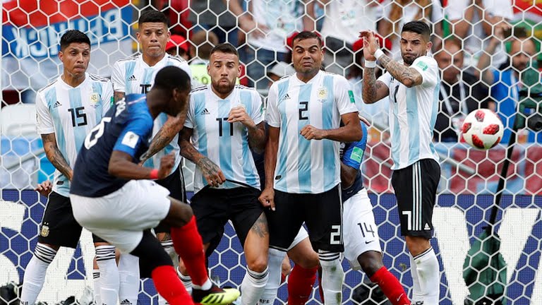 Уже в самом начале второй половины встречи аргентинская национальная команда вышла вперед. Месси забрал мяч после стандарта и пробил по воротам, мяч попал в Меркадо, а уже от него рикошетом отлетел в ворота. Таким образом ход матча кардинально изменился и уже французам нужно было бежать отыгрываться.